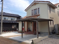 雪国の北陸では、カーポートは必須アイテムです。積雪地仕様のカーポートと言えばスチール製の折板屋根が主流ですが、最近では透過性のある屋根パネルタイプの物もあり、暗くなりがちだった屋根は採光が得られ明るいスタイリッシュなカースペースを実現する事ができます。