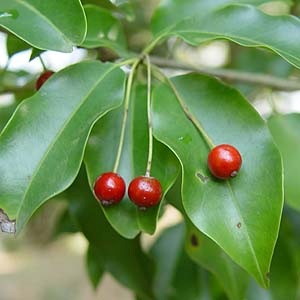 緑の葉に赤い実をつり下げる姿(雌株のみ)が好まれ、庭木として使われます。葉が密生していないので、爽やかな印象を持ちます。半日陰にも適応し、病害虫にも強い木です。