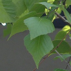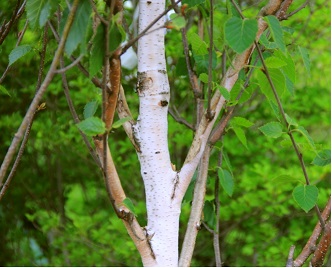 若木のうちから樹皮の色が白く美しいシラカバの木で、樹木が並ぶ中で混植しても目立ちます。ナチュラルガーデンの中に植えるなど、自然なイメージの景観によくマッチします。比較的成長が遅いので一般家庭に向いています。 | ||||