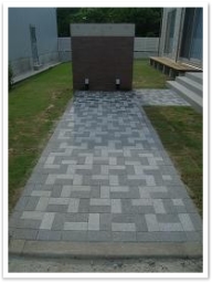 アプローチはインターロッキング敷きです。使用したのは、東洋工業「ハイブリック4」です。