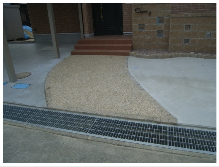 ピンコロで縁取り中は化粧砂利洗出し仕上げに。