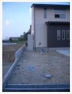 建物の前面ファサードは固い地盤で水はけが悪く、雨の後には必ず水たまりが出来る状態でした。