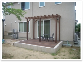 床材はウリン、縁と側面はタイル貼りにした一風変わったお洒落な仕上がりです。