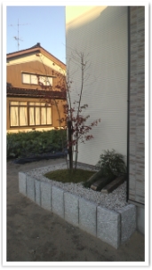 玄関までの長いアプローチは途中でクランクさせ、黒とグレーのタイルの配色で個性を出しました。 さらに個性が光る門袖は、白の化粧塗り壁と黒の天然石タイルのコントラストが素敵です。 同じ黒でも素材が違うので、それぞれ違った輝きがあります。 表札とポストも黒でまとめ、他にはないオンリーワンな門袖になりました。 |