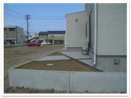 化粧砂利敷きの部分は泥はねを気にする事なく、