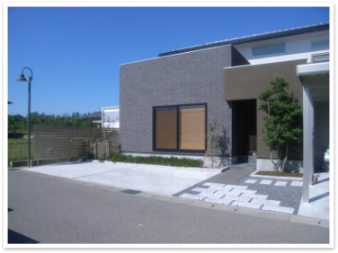 ~黒・白の外壁と同じく、同じ色調で統一したエクステリア~