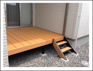 ウッドデッキは三協アルミ「ひとと木2」です。人工木デッキなので、お手入れ楽々メンテナンスフリーです。