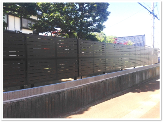 表面は木調タイプですが、裏面はアルミ形材色になっているので、リーズナブルなフェンスです。