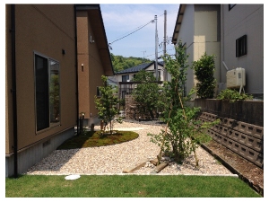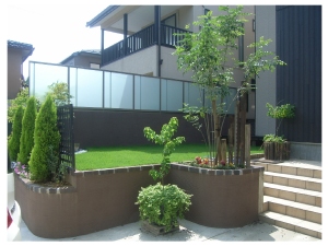 みどり豊かなお庭を、適度な隙間あるフェンスで囲いました。 |