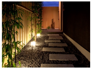 ~素材と照明こだわりのお庭~
