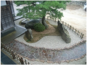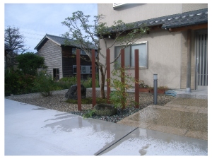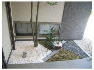 玄関横の入り込んだスペースを利用した坪庭空間です。 |