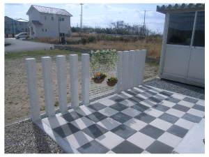 駐輪場へのRラインのアプローチは、所々に花を散りばめて可愛らしい仕上がりになりました。